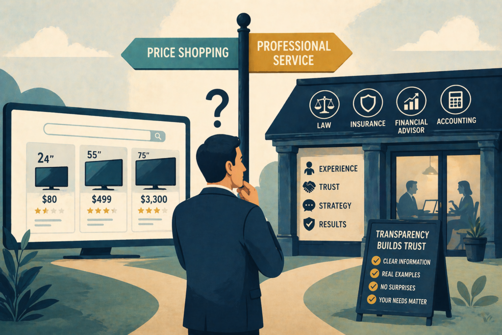 There’s a big issue with the Internet and professional service businesses: Should they post prices?